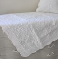 | 商品説明 | 繊細なアラベスク柄のキルトが素敵なホワイトキルトシリーズ 周りは緩やかなカーブとストライプのキルティングでアクセントが施されています 清潔感のあるホワイトはインテリアにも馴染みやすく、お部屋を明るく彩ります こちらは100×100サイズのキルトカバー ラグマットの他にもマルチカバーにもお薦めです お子様やペットのいるご家庭でも綿100%のキルトは安心してご使用頂けます
