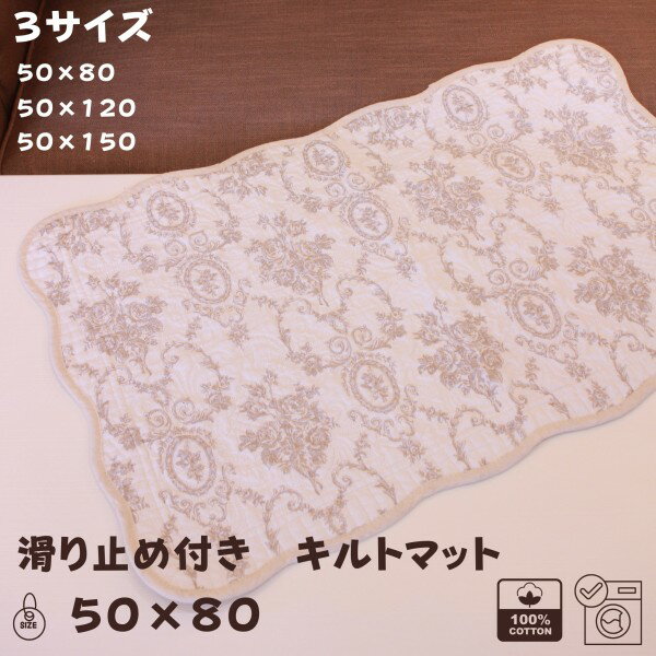 | 商品説明 | 繊細なアラベスク柄のミシンキルトが施された高級感のあるキルトシリーズ 人気のローズ柄に新カラーが入荷しました♪ こちらは50×120cmの滑り止め付きキルトマット