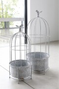 ナチュラルシャビーな風合いが魅力の、鳥かごデザインのプランター サイズ違いの2点セットです