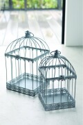 落ち着いたナチュラルなシャビー調の風合いが魅力的な、四角い鳥かごデザインのディスプレイアイテム サイズ違いの2点セットです