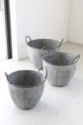 細かなヘリンボーン模様が印象的なメタルバスケット サイズ違いの3点セットです