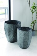 表情豊かなエンボス加工が施された、プランターポット サイズ違いの2点セットです