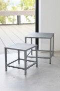 シルバーの金属的な質感や光沢は、光を反射し空間を明るく見せてくれます スッキリしたロースタンドは、高さのない観葉植物などのプランターやオブジェなどに最適です
