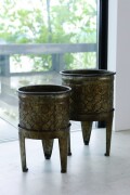 ラスティなブロンズカラーにオリエンタルなエンボスのパターンが魅力的なポットカバーセット