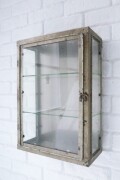 アンティーク加工を施した、ブロカントな雰囲気のガラス コレクションケース 棚上やコンソールなどの上に置いて頂いたり、壁掛けラックとしてもご使用頂けます コレクション小物や愛用のアクセサリー・時計・メガネなどショップのディスプレイ風に飾ってもお楽しみ下さい |