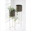 スタンド付きの室内用鉢カバー L ・Sの2個セットです アンティークゴールドの落ち着いた色合いと華奢でシンプルなスタンドが大人でシックな印象です リビングやお玄関で植物のコーディネートにお役立てください |