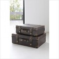レザーの質感が重厚感たっぷりなトランクボックス こちらはスモールサイズで大・小の2個セットです 金具や持ち手の縫い目など細かい箇所までこだわっており、洗練された雰囲気があります 日用品の収納ボックスとしてそのままお部屋や玄関に置いておけばインテリアのアクセントになってくれます