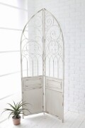 繊細なアイアン細工が美しいアイアンスクリーン エイジング加工で所々にサビや擦れているように見せシャビーシックな風合いを表現しています ご自宅やテラスの間仕切りとしてはもちろん、コーナーや壁面に寄せて飾るだけでアクセントになってくれます