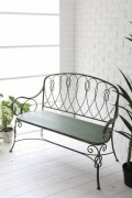 シックなグリーンに曲線のデザインが可愛いガーデンベンチ リアルなアンティーク加工が施されています 2人掛けができるほどの大きさで、存在感抜群のベンチをお庭やテラスに置けば優雅な空間に仕上がります ガーデンの雰囲気をワンランクアップしてくれるアイテムです |