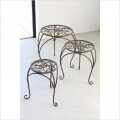 優雅な曲線に天板のデザインが特徴のフラワースタンド サイズ違いの3点セットです アンティークな風合いもありながらモーブブラウンの優しい色合いと大人っぽいデザインが様々なテイストのガーデンと馴染み、お花や植物を美しく引き立てくれます ベランダや玄関ポーチなどの限られたスペースでも高さをつけたディスプレイを楽しんで頂けます 軽くて持ち運びも簡単にできるので気軽に場所を変えて楽しんで頂けます |
