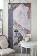 こちらは布製のスクリーンタイプの壁飾り 宮殿の扉を開けた先にはコラムやフラワーベース、イタリアンスタイルの壁面装飾の美しい螺旋階段が広がるエレガントな絵画風の絵柄です