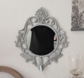 こちらはアイアン製の壁掛けミラー シャビーシックなグレーカラーです アンティーク加工が丁寧に仕上げられています 紋章のようなおしゃれなデザインと程よいサイズ感は壁面に彩を添えてくれます |