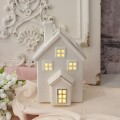 こちらは陶器で出来たハウス型のLEDオブジェ 3サイズある中の中間のミディアムサイズです ホワイトのセラミックに繊細にゴールドペイントを施し、お洒落な雰囲気です サイズ違いで並べて飾って頂くのもおすすめ 日中はお洒落でエレガントなオブジェ、夜は明かりを灯して柔らかな雰囲気をお楽しみ下さい