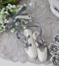 こちらは可愛い香りのオブジェ センティッドデコ 長いグレーのサテンリボン付きで掛けて飾って頂けるトゥーシューズです 愛くるしい存在は近くを通るたびに癒しの香りも届けてくれますよ マチルドのオーナメントスタンドに吊るして飾ったり、トレイなどにのせて複数のデコを組み合わせても素敵です 香り マーキーズ