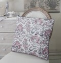 こちらは45cm角のクッション(ファスナー開閉で中綿付き) リネンベージュ地にグレーやピンクのオリエンタルな花のモチーフはフランスらしいデザインを感じます マチルドのクッションシリーズでコーディネートもお楽しみ下さい