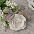 こちらは可愛い香りのオブジェ センティッドデコ グレーのグログランリボンに大きなローズです ローズがお好きな方へのギフトにも喜ばれそうです