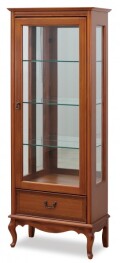 こちらは引出し前板に模様貼りをアクセントにした、細身で奥行が浅いコンパクトな猫脚スタイルのキュリオケース 側面ガラス張りに背板はミラー貼りで、天板下にLED照明が1灯付いているので、お気に入りの装飾品をより一層引き立てます