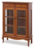 こちらは引出し前板に模様貼りをアクセントにした、奥行が浅いコンパクトな猫脚スタイルのキャビネット 側面はガラス張りなのでお気に入りの装飾品を一層引き立てます