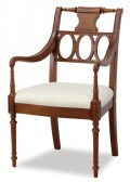 新たにリージェンシー様式のダイニングシリーズが加わりました こちらは背面やアーム装飾のデザインが美しいアームチェア 座面はウレタンフォームにSバネとウェービングテープの構造で、弾力のあるしなやかな座り心地です