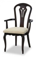 こちらのアームチェアは背面のデザイン装飾がポイントです 座面は座り心地のよいファブリックとなっており快適に座って頂けます シリーズのダイニングテーブルやデスクと合わせたり、追加のチェアにいかがでしょうか |