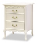 こちらはベッド横に最適なサイドテーブル 3引き出し収納タイプです 2口コンセント(1500W)付きです フルールシリーズのベッドと揃えていかがでしょうか |
