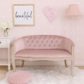 滑らかなベロアピンク生地がおしゃれな優雅なサロンソファ2人掛け 猫脚が素敵なフレームは木目の見えるシャビーな色合いです