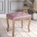 落ち着いたベロアピンク生地のシャビー仕上げのスツール 木目の見えるシャビーな色合いはフレンチテイストにかかせない存在です 細身なので玄関やパウダールーム、ドレッサースツール、ダイニングの補助椅子にもおすすめです