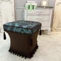 ジェニファーテイラーのCarlisle生地で仕上げたスツール タッセルやブレードを使いエレガントで高級感の有るデザインと実用性を兼ね備えています 上品なカラーでインテリアのコーディネイトも合わせやすくお薦めです 座面もしっかりとした作りで、適度なクッション性と安定感が有り座り心地もバッチリです またリビングのソファーの横でトレイ等を置いてサイドテーブル代わりにもお使いいただけます