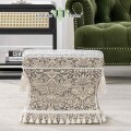 イギリスのウィリアムモリスの人気生地、イチゴ泥棒風の織生地で仕上げた優雅なスリムスツール お部屋に合わせやすいグレーベージュのジャガード生地と贅沢にあしらわれたフリンジやタッセルが高級感を演出します