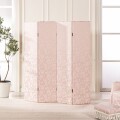 こちらは両面同生地張りの華やかな4連パーテーション 裏面はブレード飾りで仕上げられています 重みもありしっかりとした木材と丁番で仕上げられていて末永くご愛用頂けます お部屋の間仕切りや撮影の背景、店舗什器にもいかがでしょうか シリーズでございますので、揃えてもお楽しみ下さい ※下側にプラスチックのプレートがついています |