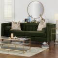 背中と内側のアーム部はボタン留めの間をステッチワークで生地を重ね合わせて、美しいクロスのシルエットを織りなしています このスタイリッシュなソファーは、生活空間にラグジュアリーでゆったりとした快適さをもたらします