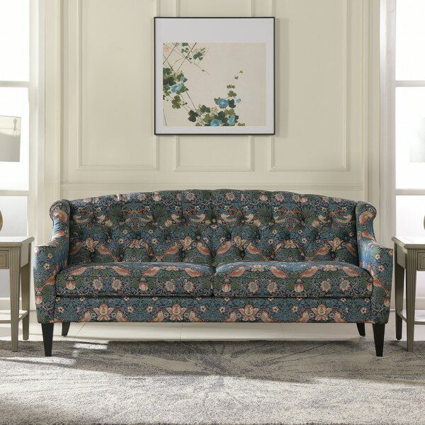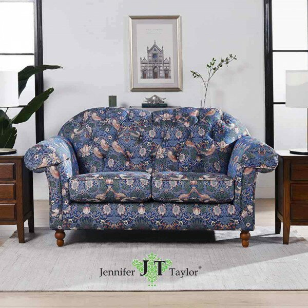 人気ブランドのジェニファーテイラー製の3人掛けソファ イギリスのウィリアムモリスの人気生地、イチゴ泥棒風の織生地が高級感を醸し出しています