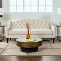 ユニークなデザインは、背もたれに沿ったボタン締めと全体の縁に沿った装飾コードがアクセントになっています 茶系色・白系色どちらの家具にもマッチするベージュ色で、お部屋を明るくセンスアップしてくれます |