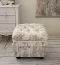 こちらは側面のプリーツが可愛い収納付きスツール 周りをフリンジが囲みインテリアのアクセントにも素敵 蓋を開けると中は収納になっています(蓋は共布のストッパー付き) お玄関やリビングなどで是非ご愛用下さい
