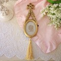 トップのリボンモチーフからオーバルフレームへと続く立体的な装飾に下部にあしらわれたタッセルが壁面に優雅な動きを与えます