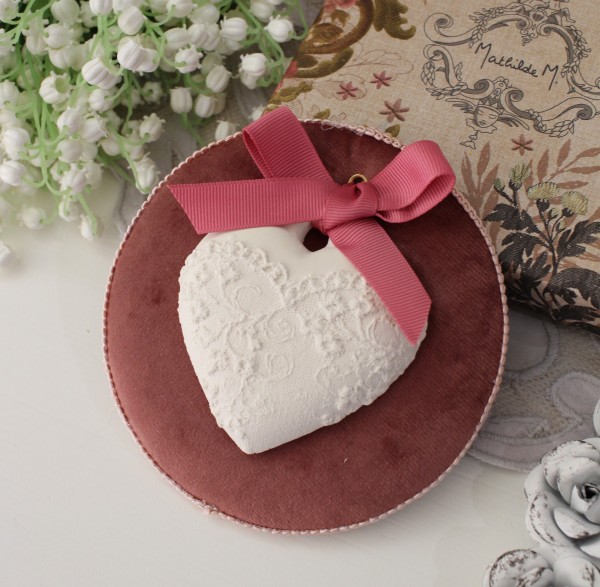 フランスのインテリアブランド Mathilde M.(マチルドエム) フレンチシャビーなインテリアやフレグランス商品が揃います こちらは高級感のあるベロア生地にハートの石膏があしらわれた壁飾り ハートのレース模様に鮮やかなピンクのグログランリボンで大人可愛いデザインです マチルドのオーナメントスタンドや壁面に吊るして飾れば優しい香りを楽しませてくれます 香り マーキーズ 香りの種類 ウッディーオリエンタル マチルドエムの象徴的な香りで、ウッディでスパイシーなノートとバニラとムスクを組み合わせたエキゾチックで官能的な香りです ※1セット(壁飾り、箱)での価格です ※ハンドメイドですので、小穴、気泡穴、小カケなど見られます |