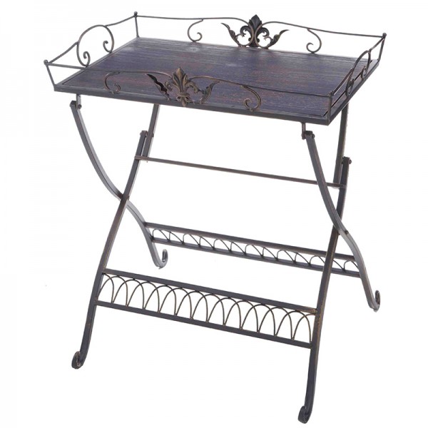 サイドテーブル アイアン ガーデンテーブル プランター台 フラワースタンド (71865) ダークブロンズ 飾り台 アイアン製 ユリの紋